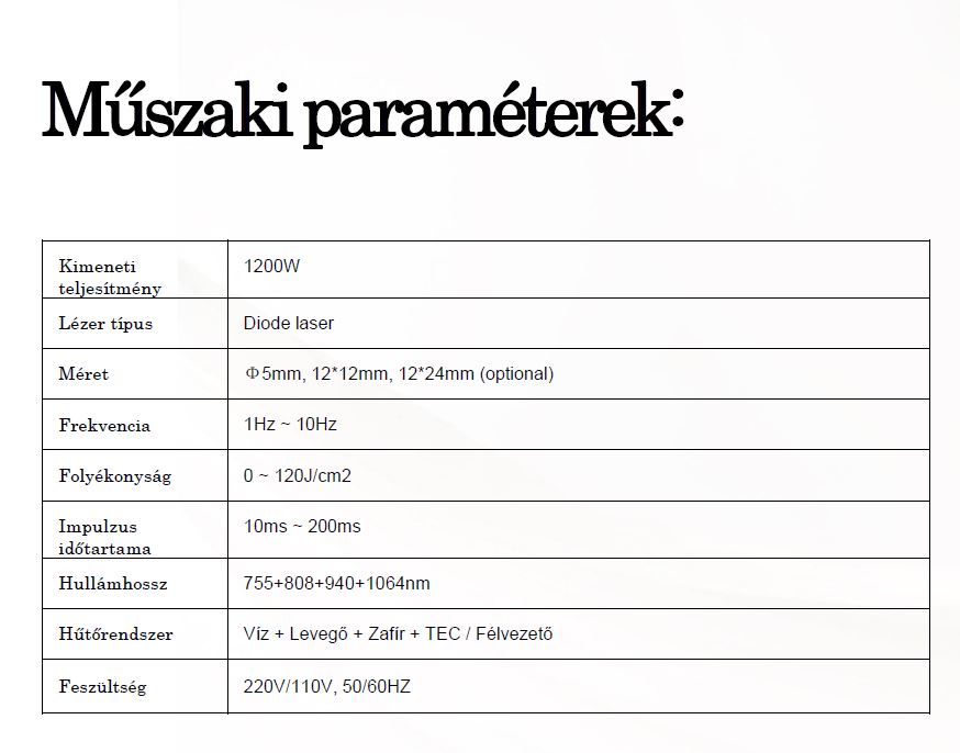 •Kettős hűtőrendszer: TEC/félvezető + zafír kontakthűtés, fájdalommentes és kényelmes kezelési élményt nyújt
