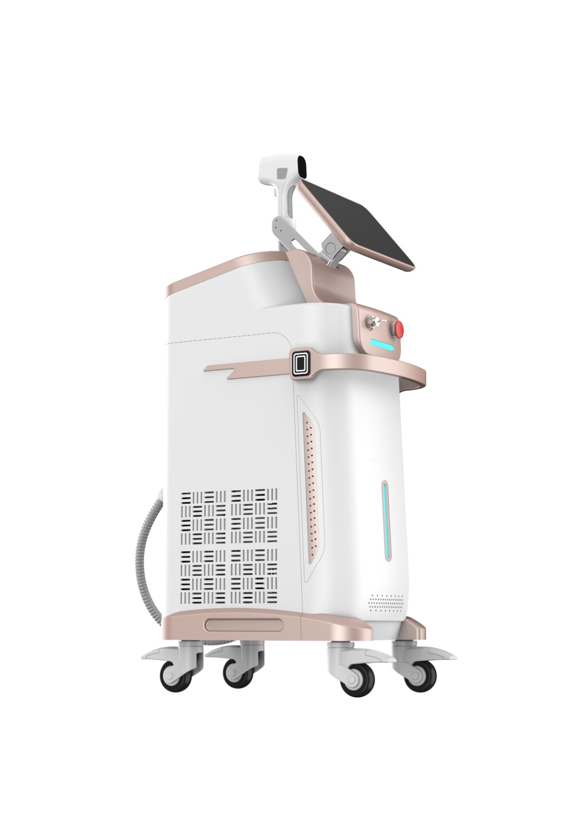 Modern design-nal rendelkező 4 hullámhosszú dióda lézer, 2000W-os kezelőfejjel, mely stabil teljesítményt és hosszú élettartamot biztosít.